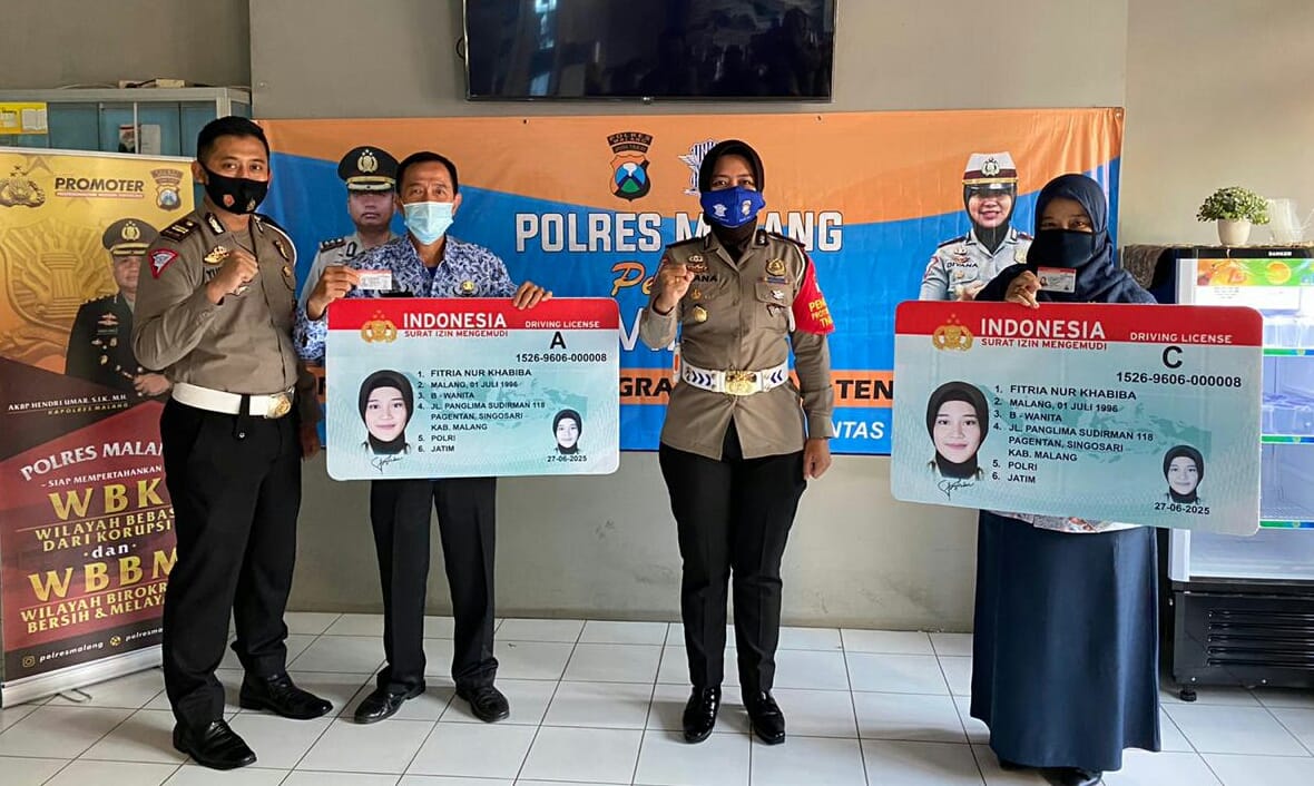 Dengan tetap menerapkan protokol kesehatan Covid-19,pemberian perpanjangan SIM gratis tersebut langsung diserahkan Kasat Lantas Polres Malang AKP Diyana Suci Listyowati S.I.K didampingi Kanit Regident Iptu Yudhi Anugerah Putra S.I.K, bertempat di kantor Satpas SIM Singosari Polres Malang.