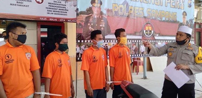 Empat tersangka diantaranya, Muhammad Sehid (35) warga Desa Rapa Laok Kecamatan Omben Sampang. Dia diketahui sebagai pengguna barang haram jenis sabu. Polisi berhasil menangkap di rumahnya, 25 Juni 2020 dengan barang bukti yang diamankan sebesar 0,26 gram.