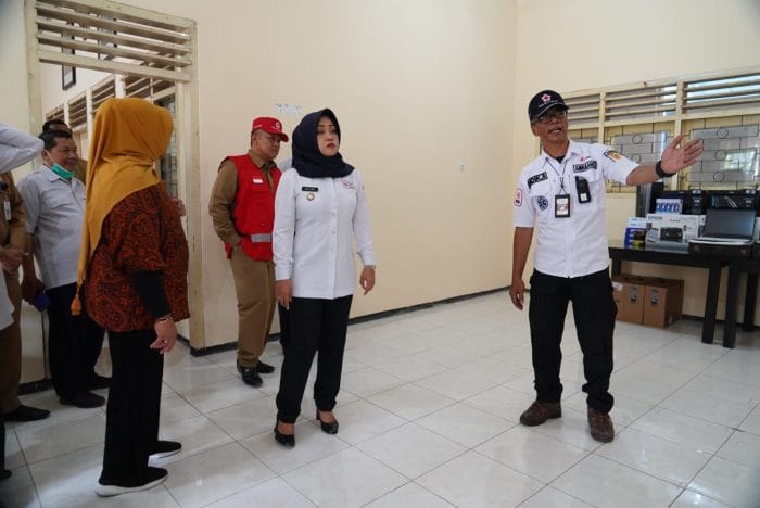 CEK: Bupati Mojokerto Ikfina saat cek langsung kondisi gedung PMI yang telah direnovasi
