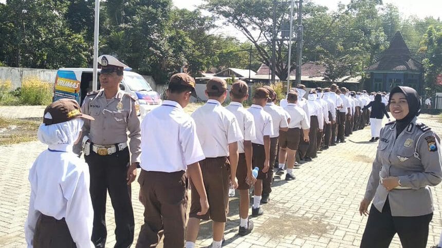 Malang, Memox.co.id – Dalam upaya meningkatkan kedisplinan pelajar dalam hal berperilaku tertib berlalu lintas di jalan raya. Unit Dikyasa Satlantas Polres Malang gelar sosialisasi keselamatan berlalu lintas kepada siswa baru SMPN 4 Kepanjen, Senin (15/07/19).