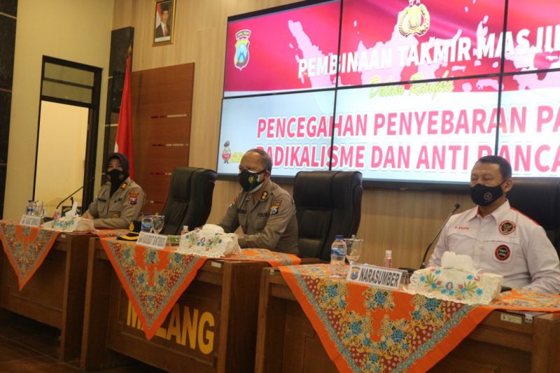 Dengan tetap mengedepankan Prokes Covid-19, kegiatan tersebut dalam rangka mencegah penyebaran paham radikalisme dan anti Pancasila melalui Masjid di Gedung Sanika Satyawada Mapolres Malang.
