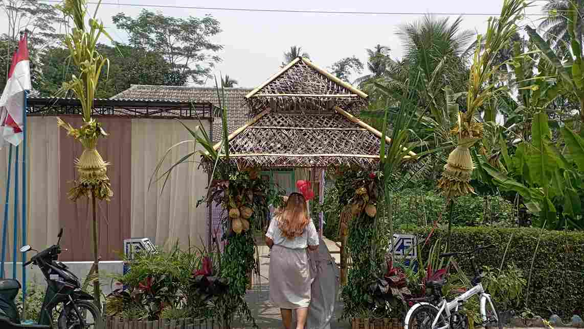 “Kami merias sendiri dekorasi ini dengan biaya seadanya dari anggaran operasional. Beberapa item rias kami tidak perlu beli, seperti tanaman hias, pisang, dan kelapa ini kita tinggal minta ke warga sekitar,” lanjutnya.