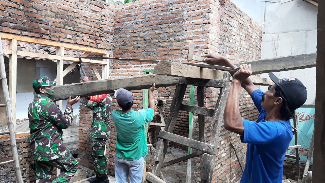 Malang, Memox.co.id – Koramil 0818/19 Gondanglegi dibantu masyarakat sekitar mengerjakan Program Rutilahu di salah satu rumah warga Desa Sepanjang Kecamatan Gondanglegi, Kamis (09/07/2020).
