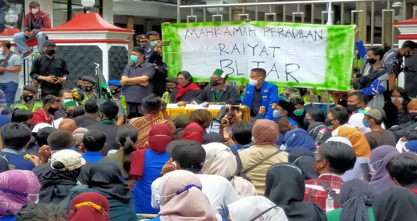 Massa meminta tiga anggota DPRD Kota Blitar tersebut untuk duduk di jalanan. Ada empat tuntutan yang disampaikan mahasiswa gabungan dalam sidang mahkamah rakyat ini. Tuntutan tersebut disampaikan kepada ketiga anggota DPRD Kota Blitar yang menemui massa.