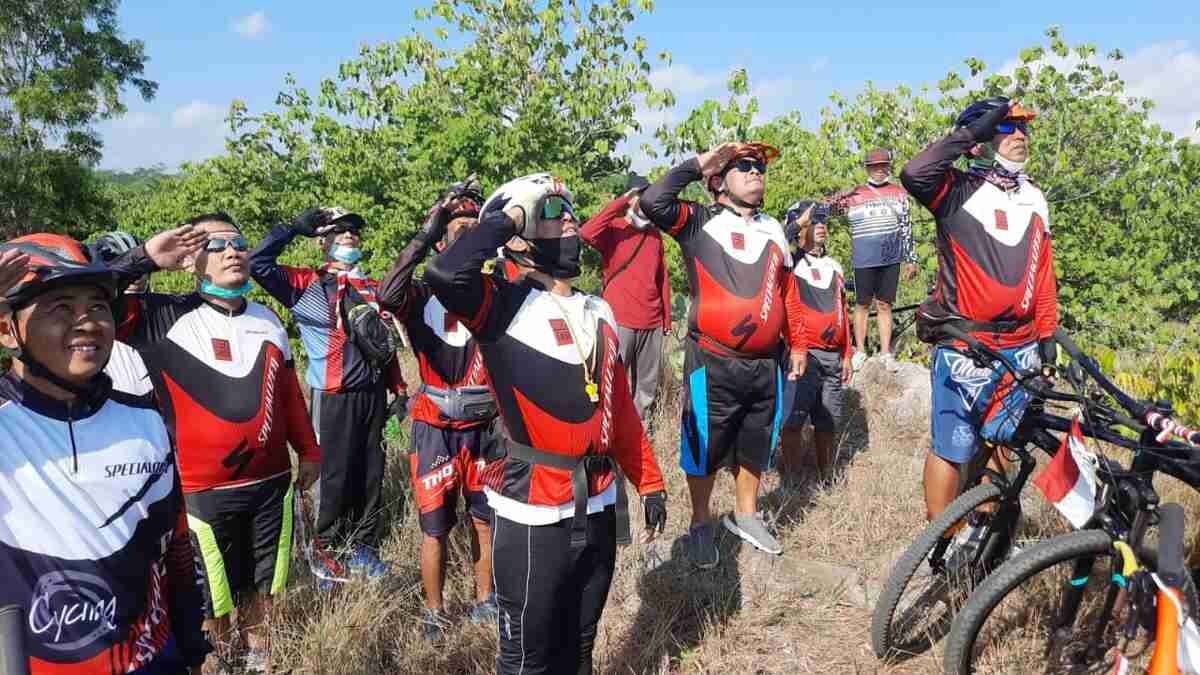 Sementara komunitas gowes ‘Rukun Agawe Santoso’ yang bermarkas di Jalan Gili Silat Kelurahan Karangtengah, Kecamatan Sananwetan Kota Blitar, juga menggelar upacara bendera sambil gowes menuju lokasi upacara bendera.