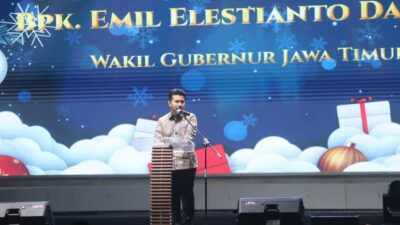 SAMBUTAN : Wagub Jatim Emil Dardak saat menyampaikan kata sambutan