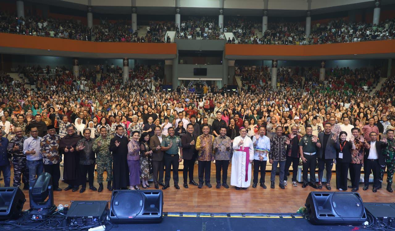 Lebih lanjut, ia juga menyampaikan apresiasi kepada seluruh pihak yang terlibat dalam terselenggaranya acara ini, mulai dari panitia, pemimpin gereja, tokoh agama, hingga unsur TNI, Polri, dan ASN yang turut menjaga kebersamaan dan kelancaran acara.