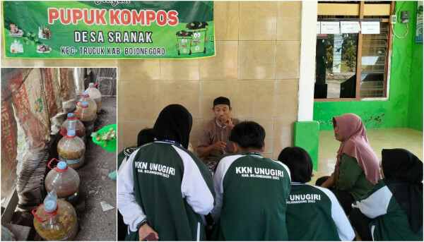 “Salah satunya dengan melakukan pemanfaatan sampah basah menjadi pupuk kompos cair yang berguna bagi para petani di desa Sranak yang mayoritas penduduknya petani,” ujarnya.